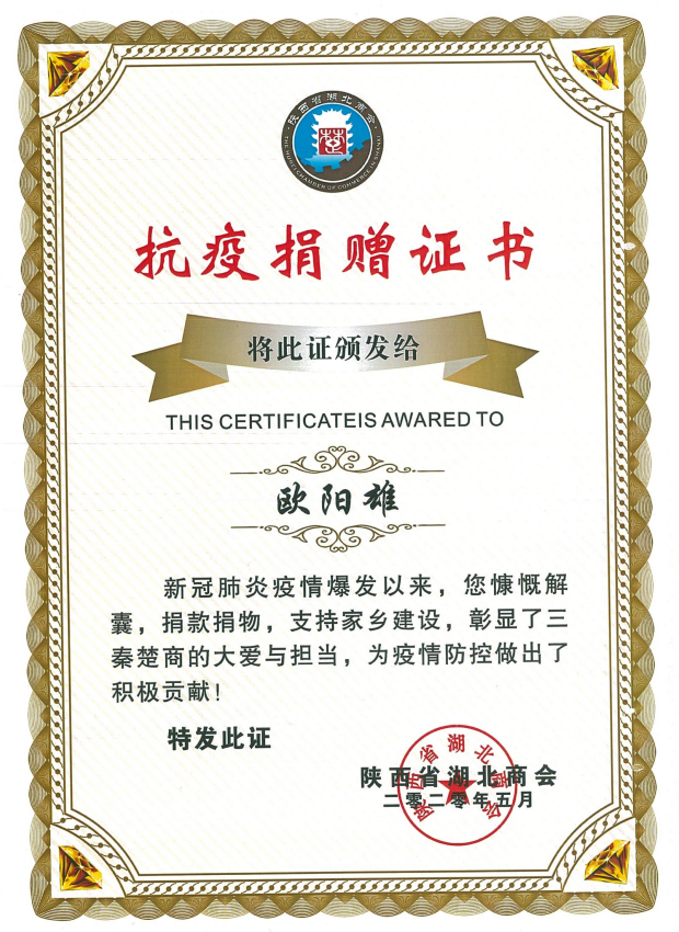 疫情捐助榮譽(yù)證書